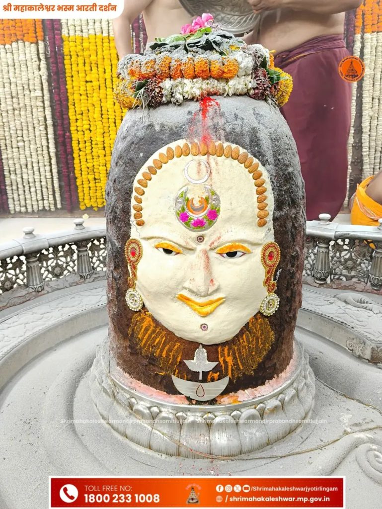 भस्म अर्पण से पहले प्रथम घंटाल बजाकर हरिओम का जल अर्पित किया गया और मंत्रोच्चार के बीच भगवान का ध्यान किया गया। कपूर आरती के बाद ज्योतिर्लिंग को कपड़े से ढांककर भस्म रमाई गई। इसके बाद शेषनाग का रजत मुकुट, रजत की मुण्डमाल, रुद्राक्ष की माला और पुष्पों की मालाएं अर्पित की गईं। आभूषणों से सुगंधित पुष्पों से भगवान का अलंकरण हुआ।