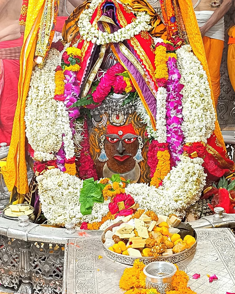 शनिवार को भगवान महाकाल का दिव्य श्रृंगार किया गया। श्री महाकालेश्वर को भस्म चढ़ाई गई। साथ ही शेषनाग का रजत मुकुट, रजत की मुण्डमाल, रुद्राक्ष की माला के साथ सुगंधित पुष्प से बनी फूलों की माला धारण की। बाबा को फल और मिष्ठान का भोग लगाया गया। भोले बाबा का ड्रायफ्रूट से आकर्षक श्रृंगार किया गया।