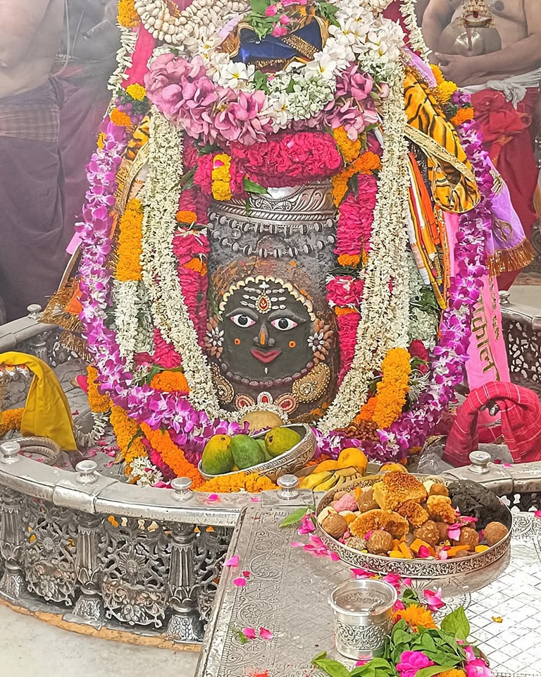 शनिवार को भगवान महाकाल का दिव्य श्रृंगार किया गया। श्री महाकालेश्वर को भस्म चढ़ाई गई। साथ ही शेषनाग का रजत मुकुट, रजत की मुण्डमाल, रुद्राक्ष की माला के साथ सुगंधित पुष्प से बनी फूलों की माला धारण की। बाबा को फल और मिष्ठान का भोग लगाया गया। भोले बाबा का ड्रायफ्रूट से आकर्षक श्रृंगार किया गया।