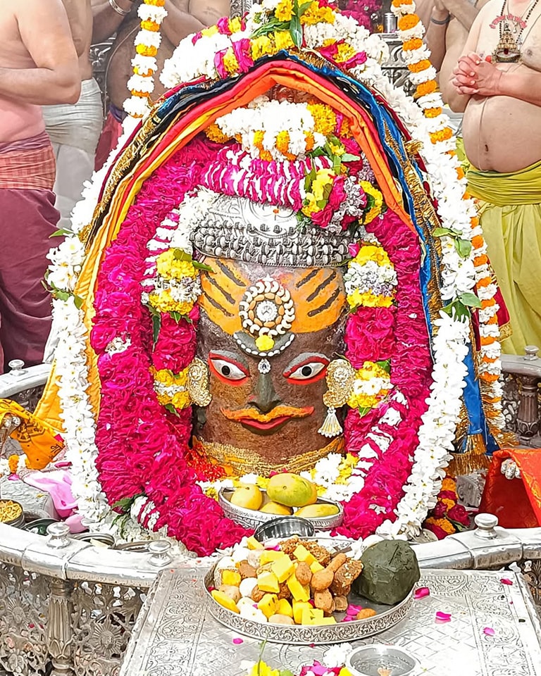 शुक्रवार को भगवान महाकाल का भांग चंदन और आभूषणों से राजा स्वरूप श्रृंगार किया गया। श्री महाकालेश्वर को भस्म चढ़ाई गई। साथ ही शेषनाग का रजत मुकुट, रजत की मुण्डमाल, रुद्राक्ष की माला के साथ सुगंधित पुष्प से बनी फूलों की माला धारण की। बाबा को फल और मिष्ठान का भोग लगाया गया। भोले बाबा का ड्रायफ्रूट से आकर्षक श्रृंगार किया गया।