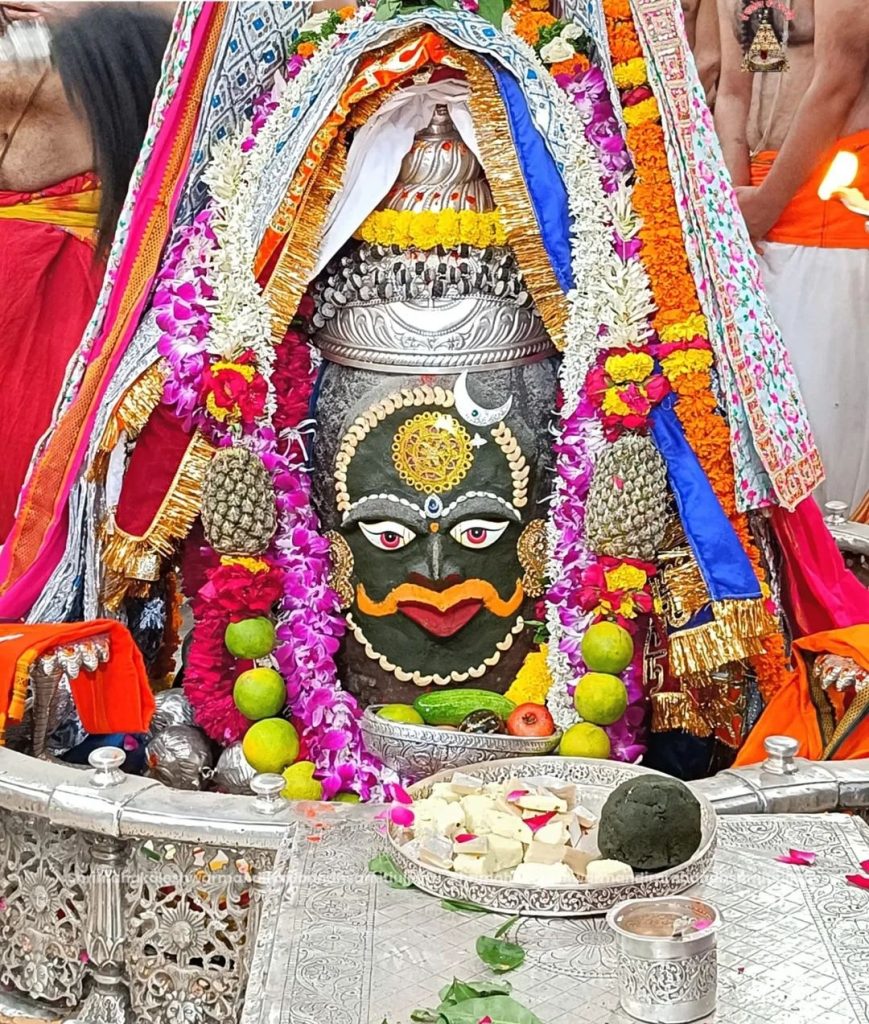 मंगलवार को भगवान महाकाल के मस्तक पर बेलपत्र और चंद्र अर्पित कर दिव्य श्रृंगार किया गया। श्री महाकालेश्वर को भस्म चढ़ाई गई। साथ ही शेषनाग का रजत मुकुट, रजत की मुण्डमाल, रुद्राक्ष की माला के साथ सुगंधित पुष्प से बनी फूलों की माला धारण की। बाबा को फल और मिष्ठान का भोग लगाया गया। भोले बाबा का ड्रायफ्रूट से आकर्षक श्रृंगार किया गया।