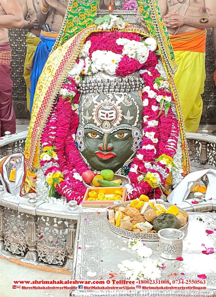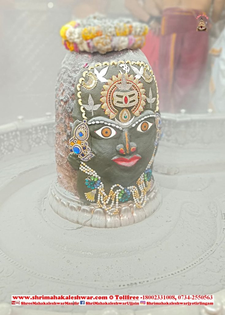 सोमवार को भगवान महाकाल का भांग चंदन और आभूषणों से श्रृंगार किया गया। श्री महाकालेश्वर को भस्म चढ़ाई गई। साथ ही शेषनाग का रजत मुकुट, रजत की मुण्डमाल, रुद्राक्ष की माला के साथ सुगंधित पुष्प से बनी फूलों की माला धारण की। बाबा को फल और मिष्ठान का भोग लगाया गया। भोले बाबा का ड्रायफ्रूट से आकर्षक श्रृंगार किया गया।