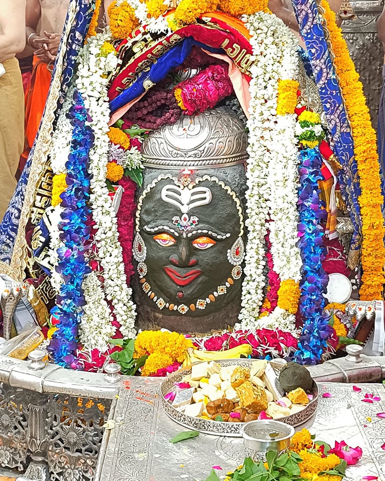 शनिवार को भगवान महाकाल का दिव्य श्रृंगार किया गया। श्री महाकालेश्वर को भस्म चढ़ाई गई। साथ ही शेषनाग का रजत मुकुट, रजत की मुण्डमाल, रुद्राक्ष की माला के साथ सुगंधित पुष्प से बनी फूलों की माला धारण की। बाबा को फल और मिष्ठान का भोग लगाया गया। भोले बाबा का ड्रायफ्रूट से आकर्षक श्रृंगार किया गया।