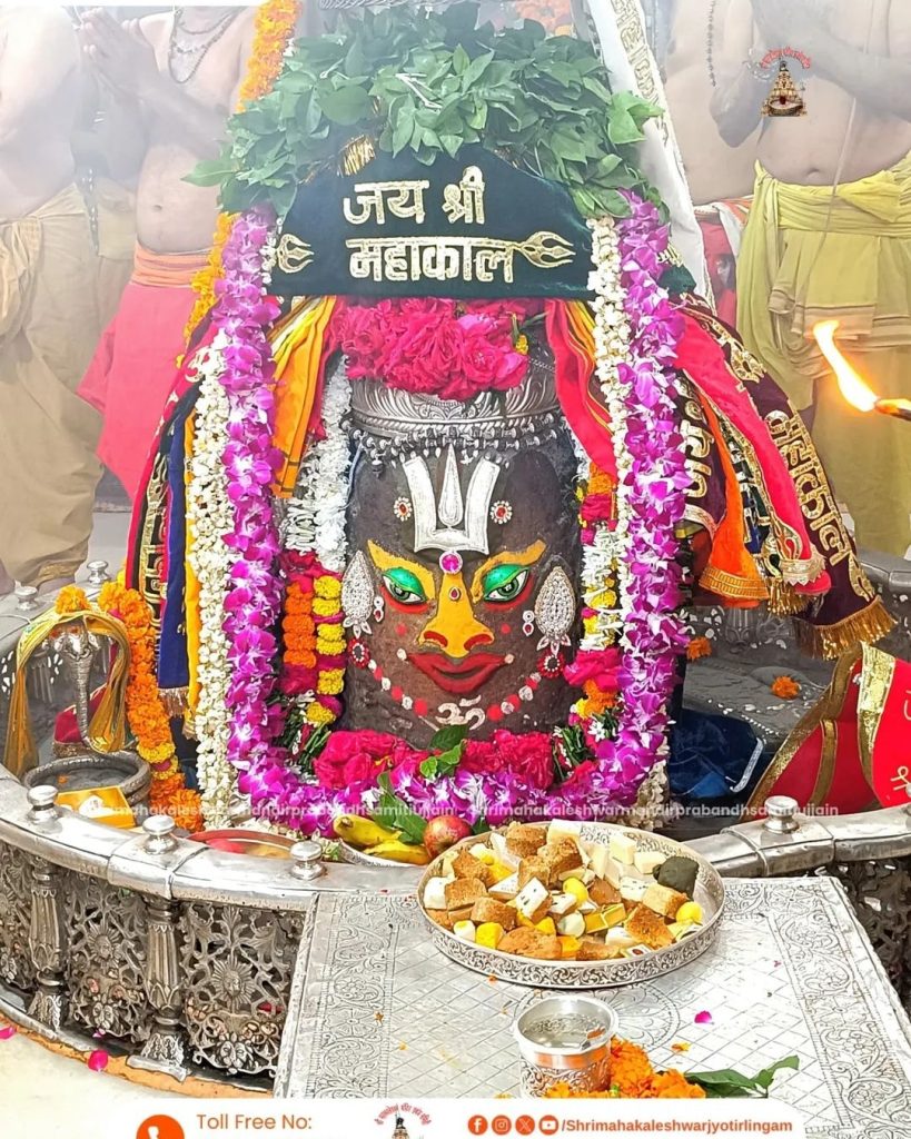 बुधवार को भगवान महाकाल का दिव्य श्रृंगार किया गया। श्री महाकालेश्वर को भस्म चढ़ाई गई। साथ ही शेषनाग का रजत मुकुट, रजत की मुण्डमाल, रुद्राक्ष की माला के साथ सुगंधित पुष्प से बनी फूलों की माला धारण की। बाबा को फल और मिष्ठान का भोग लगाया गया। भोले बाबा का आभूषणों से आकर्षक श्रृंगार किया गया।