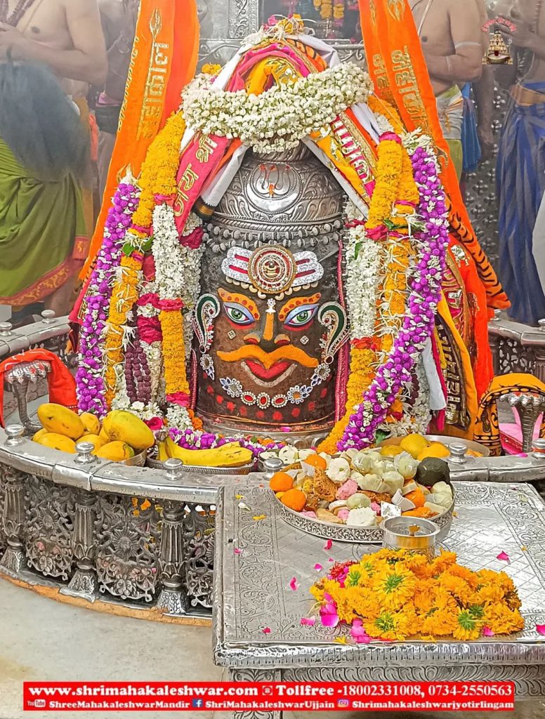 बाबा महाकाल के मस्तक पर चंद्र और त्रिशूल अर्पित कर फूलों की माला भांग, चंदन और आभूषण से श्रृंगार किया गया। महाकाल को भस्म चढ़ाई गई। भगवान महाकाल ने शेषनाग का रजत मुकुट, रजत की मुण्डमाल, रुद्राक्ष की माला के साथ सुगंधित पुष्प से बनी फूलों की माला धारण की। फल और मिष्ठान का भोग लगाया।