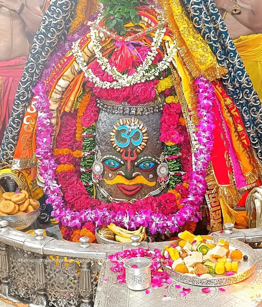 रविवार को भगवान महाकाल का दिव्य श्रृंगार किया गया। श्री महाकालेश्वर को भस्म चढ़ाई गई। साथ ही शेषनाग का रजत मुकुट, रजत की मुण्डमाल, रुद्राक्ष की माला के साथ सुगंधित पुष्प से बनी फूलों की माला धारण की। बाबा को फल और मिष्ठान का भोग लगाया गया। भोले बाबा का आभूषणों से आकर्षक श्रृंगार किया गया।