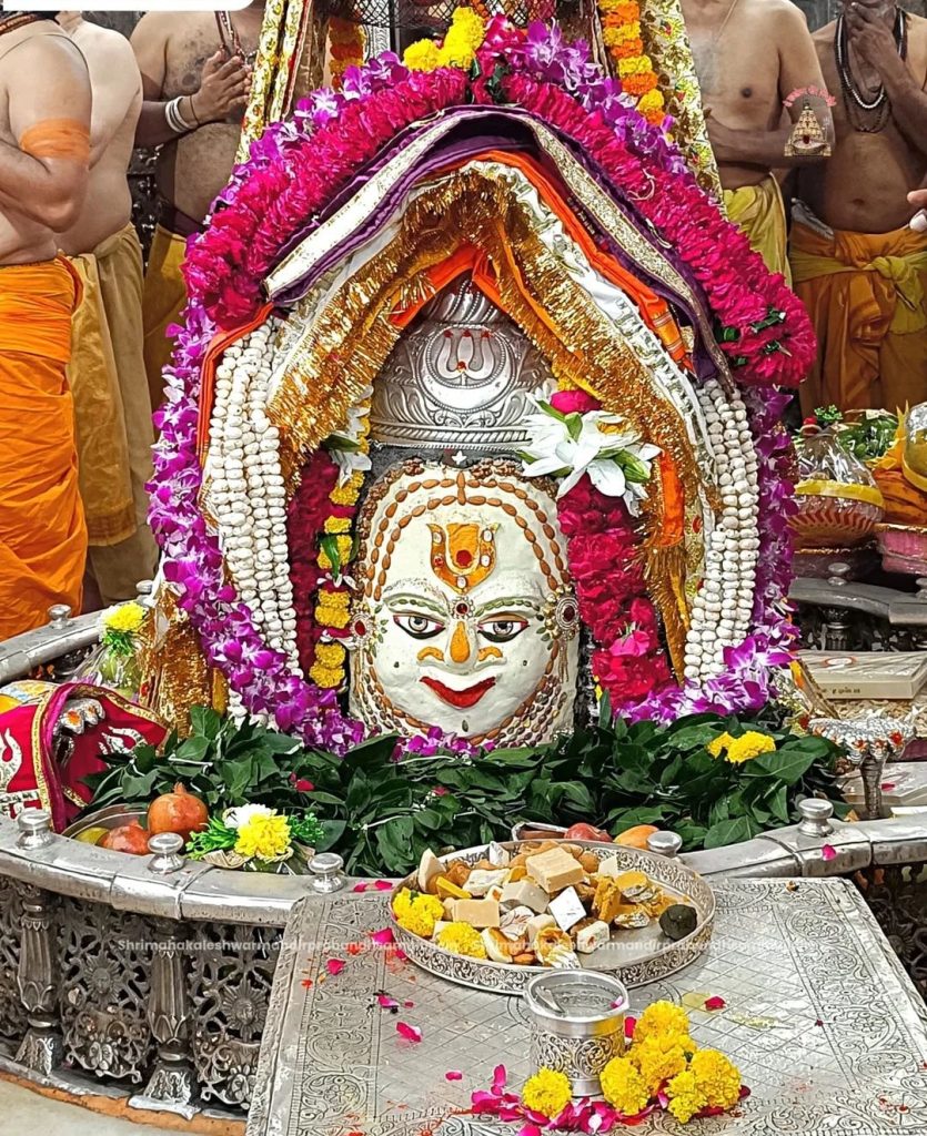 भस्म अर्पण से पहले प्रथम घंटाल बजाकर हरिओम का जल अर्पित किया गया और मंत्रोच्चार के बीच भगवान का ध्यान किया गया। कपूर आरती के बाद ज्योतिर्लिंग को कपड़े से ढांककर भस्म रमाई गई। इसके बाद शेषनाग का रजत मुकुट, रजत की मुण्डमाल, रुद्राक्ष की माला और पुष्पों की मालाएं अर्पित की गईं। आभूषणों से सुगंधित पुष्पों से भगवान का अलंकरण हुआ।