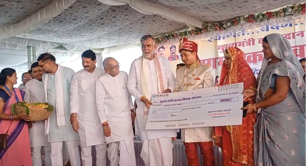 Mukhyamantri kanya Vivah Yojana : आज मध्य प्रदेश के कई जिलों में मुख्यमंत्री कन्या विवाह योजना के अंतर्गत कई नए जोड़ों की शादी हुई। कई दूल्हा-दुल्हनों ने जहां सात फेरे लेकर विवाह किया। वहीं मुस्लिम युवक-युवतियों ने भी निकाह पढ़ा। मुख्यमंत्री डॉ. मोहन यादव धार में आयोजित कार्यक्रम में खुद शामिल हुए। वहीं पन्ना में उन्होंने वर्चुअली सहभागिता की। नरसिंहपुर में कैबिनेट मंत्री प्रहलाद पटेल शामिल हुए।