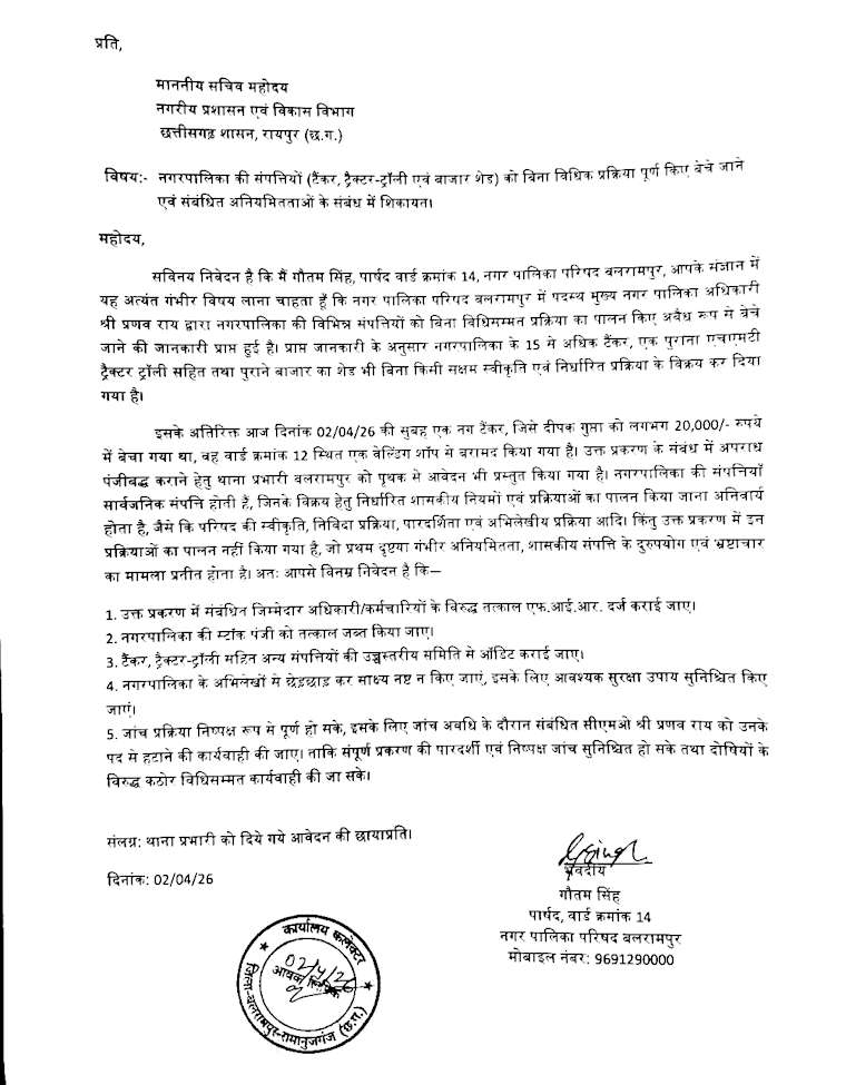 वार्ड 14 पार्षद गौतम सिंह का कहना है कि यह कोई पहला मामला नहीं है। वे पहले भी कई बार CMO के खिलाफ शिकायत कर चुके हैं, लेकिन अब तक कोई ठोस कार्रवाई नहीं हुई। इससे नाराज पार्षदों का कहना है कि अपने ही सरकार में उनकी सुनवाई नहीं हो रही और अधिकारी मनमानी पर उतारू हैं।