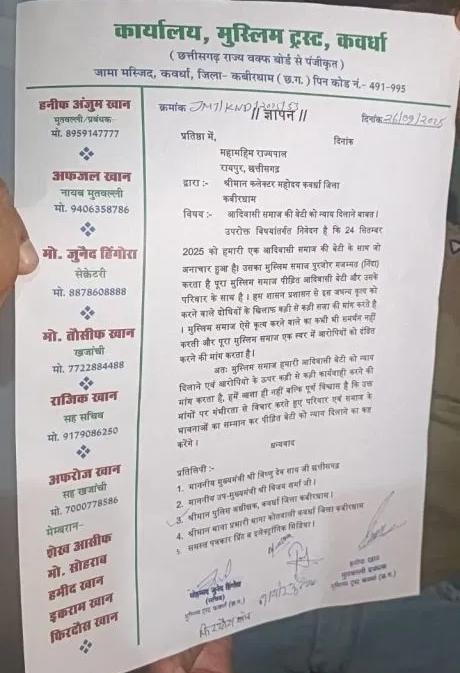 कवर्धा। कोतवाली थाना क्षेत्र में 23-24 सितंबर की दरमियानी रात आदिवासी युवती के साथ हुए सामूहिक दुष्कर्म मामले ने पूरे जिले को झकझोर कर रख दिया है. पुलिस ने त्वरित कार्रवाई करते हुए इस जघन्य अपराध में शामिल तीन आरोपियों को गिरफ्तार कर उनके खिलाफ गंभीर धाराओं के तहत मामला दर्ज कर न्यायालय में पेश किया है. घटना में शामिल दो आरोपी मुस्लिम समुदाय से होने की जानकारी सामने आने के बाद स्थानीय मुस्लिम समाज ने भी कड़ी नाराजगी जताई है.