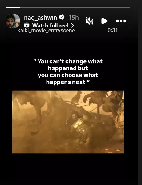 बता दें कि मेकर्स ने कमिटमेंट्स का हवाला देते हुए दीपिका पादुकोण (Deepika Padukone) को ‘कल्कि 2898 एडी’ के सीक्वल से बाहर कर दिया है. इसी बीच नाग अश्विन (Nag Ashwin) ने अपने इंस्टाग्राम की स्टोरी पर एक क्रिप्टिक पोस्ट शेयर किया है. उन्होंने ‘कल्कि 2898 एडी’ से जुड़ी एक क्लिप शेयर करते हुए कैप्शन में लिखा, ‘जो हो गया उसे आप बदल नहीं सकते, लेकिन आगे क्या होगा यह आप चुन सकते हैं.’