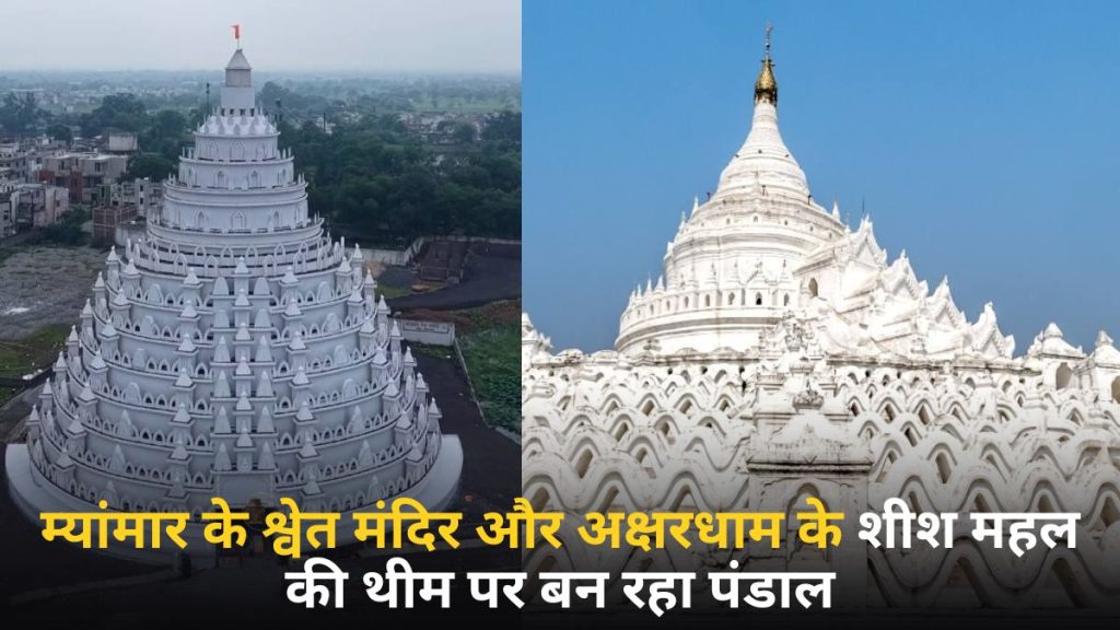 रायपुर/जांजगीर-चांपा। देशभर में प्रसिद्धी हासिल कर चुका श्री दुर्गा पूजा उत्सव नैला के द्वारा दुर्गोत्सव की तैयारी पिछले करीब 1 महीने से युद्ध स्तर पर की जा रही है. यामार (बर्मा) में स्थित विश्व प्रसिद्ध श्वेत मंदिर की तर्ज पर इस वर्ष 140 फीट ऊंचा भव्य प्रवेश द्वार बन रहा है. वहीं डोम पंडाल के अंदर परिसर को इस बार अक्षरधाम मंदिर के शीशमहल की तर्ज पर डिजाइन जा रहा है.