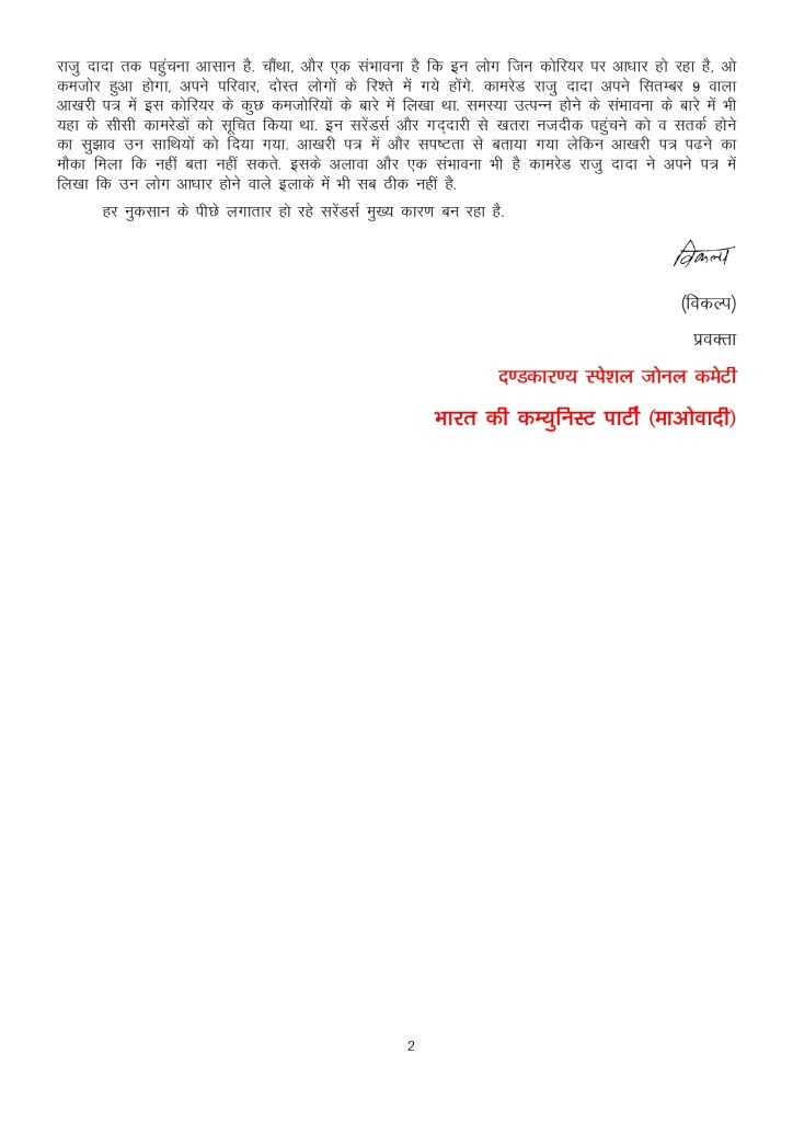 नक्सलियों ने स्वीकारा कि सरेंडर कर रहे नक्सलियों से ही पुलिस को खुफिया जानकारी मिल रही है, इसके अलावा पर्चे में जिक्र किया गया है कि राम चंद्र रेड्डी को 10 साल पहले ही जंगल छोड़ दूसरी जिम्मेदारी दी गई थी, उनके साथ गए कोरियर से पुलिस रामचंद्र रेड्डी के पास तक पहुंची.