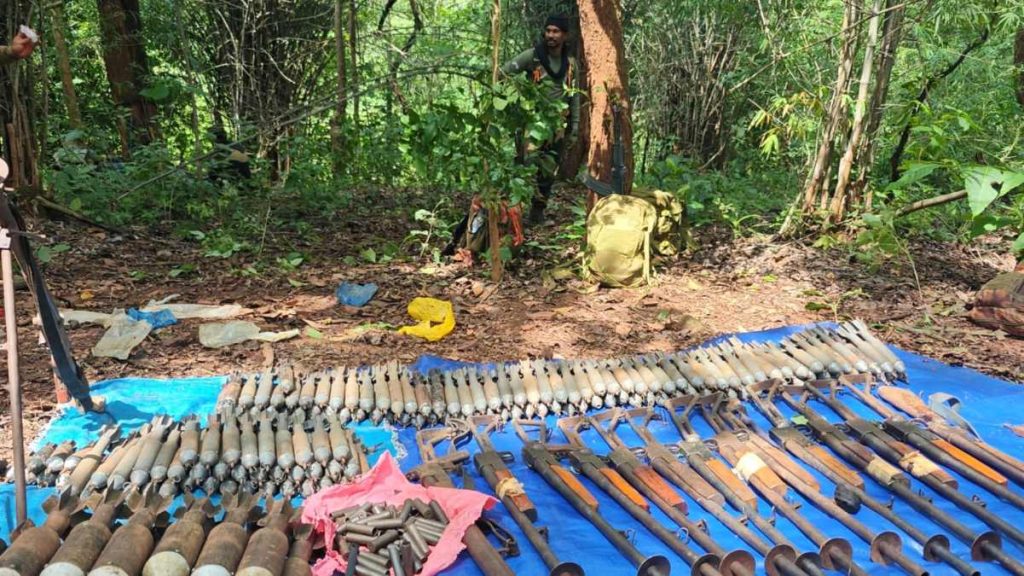 मुठभेड़ स्थल से भारी मात्रा में हथियार और नक्सल सामग्री बरामद की गई है, जिनमें शामिल हैं: