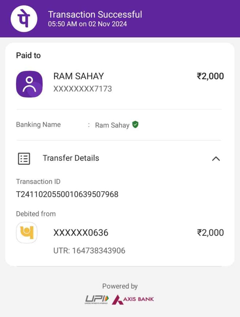सरपंच ने यह भी बताया कि वह रात में बुध केयर हॉस्पिटल में अपने पड़ोसी 7 साल के युवक को भर्ती कराकर घर लौट गए थे. इसके बाद उन्हें सुबह करीब साढ़े 4 से 5 बजे मृतक के परिजनों का कॉल आया कि अस्पताल में पैसा जमा करना है तो उनके द्वारा PNB बैंक ब्रांच के राम सहाय नाम के शख्स के खाते में दो हजार रुपए फोन पे के माध्यम से ट्रांजैक्शन भी किया गया है, जिसका स्क्रीनशॉट वायरल हो रहा है.