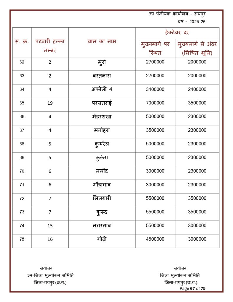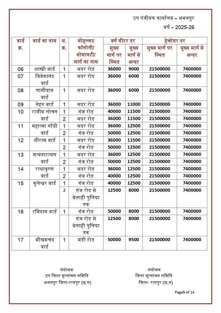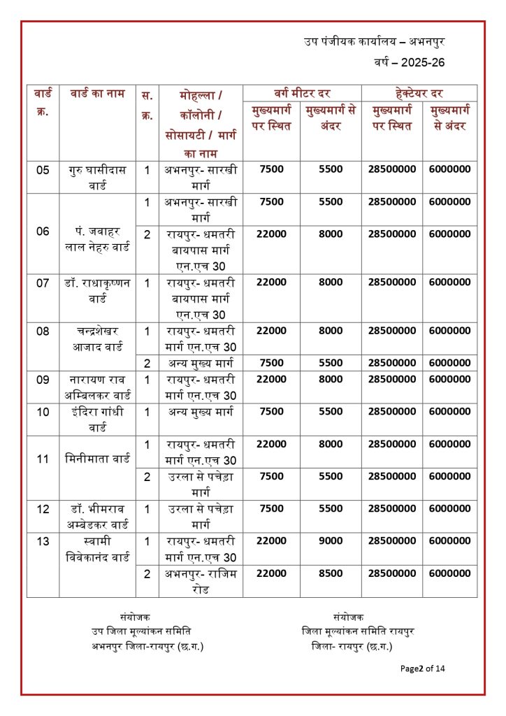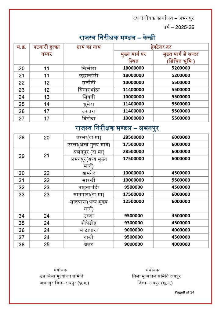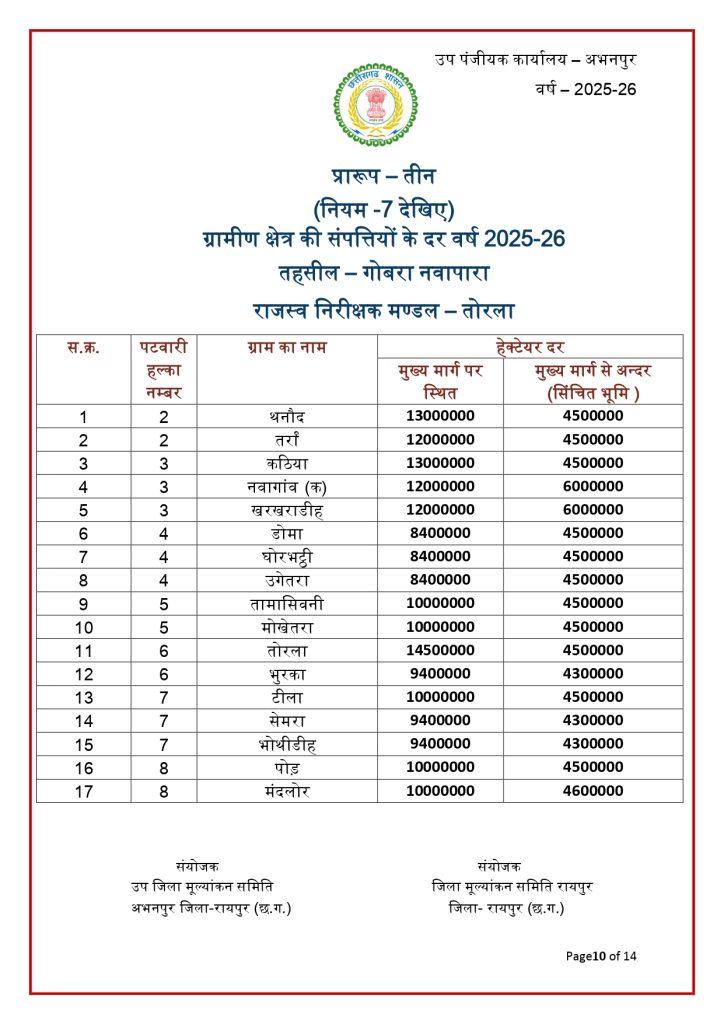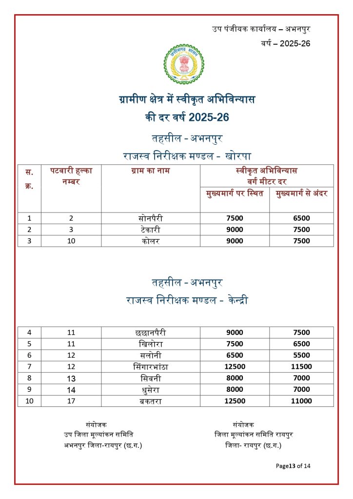 रायपुर। छत्तीसगढ़ में जमीन की नई संशोधित गाइडलाइन दर जारी हो गई है. राज्य की जिला मूल्यांकन समितियों से प्राप्त प्रस्तावों के आधार पर जमीन की नई गाइडलाइन दरों को मंजूरी देने के साथ प्रकाशित कर दिया गया है. नई गाइडलाइन में शहरी के मुकबाले ग्रामीण क्षेत्रों की दर में भारी कमी आई है. नई संशोधित गाइडलाइन दरें 30 जनवरी 2026 से प्रभावशील हो गई हैं.