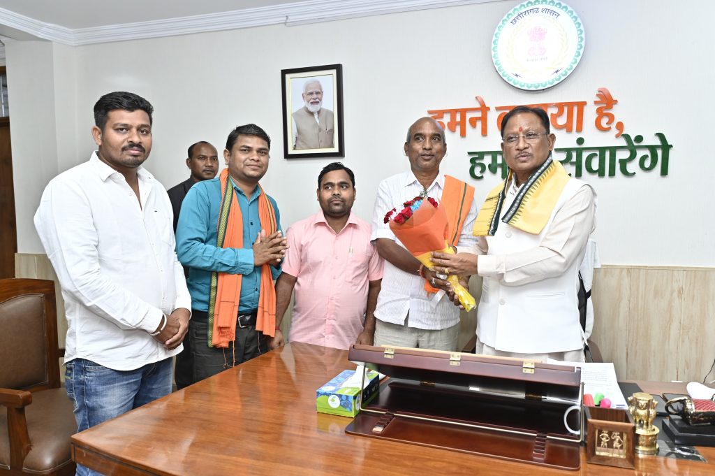 रायपुर. मुख्यमंत्री विष्णुदेव साय से आज राजधानी स्थित उनके निवास कार्यालय में निगम-मंडलों के नवनियुक्त अध्यक्षों ने मुलाकात की. मुख्यमंत्री साय ने सभी अध्यक्षों को नवीन दायित्व की बधाई और शुभकामनाएं देते हुए उनके सफल कार्यकाल की कामना की. इस अवसर पर उद्योग मंत्री लखनलाल देवांगन भी उपस्थित रहे.