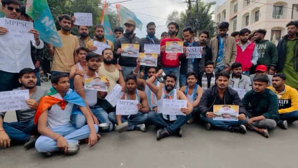 शब्बीर अहमद, भोपाल/संदीप शर्मा, विदिशा। मध्य प्रदेश में सरकारी भर्ती (MPPSC Recruitment) को लेकर अनोखा विरोध प्रदर्शन किया गया। एनएसयूआई (NSUI) कार्यकर्ताओं ने अर्धनग्न होकर हाथों में कटोरा लेकर विरोध जताया। इधर, विदिशा में सरकार का पुतला दहन किया गया। NSUI की मांग है कि एमपीपीएससी में पदों को बढ़ाया जाए। वहीं उन्होंने छात्रों के साथ वादाखिलाफी का भी आरोप लगाया है।