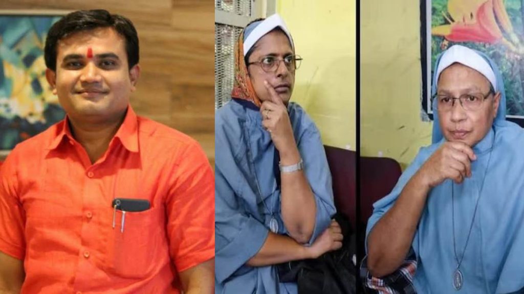 लक्षिका साहू, दुर्ग। छत्तीसगढ़ के दुर्ग जिले में केरल की दो कैथोलिक ननों की गिरफ्तारी ने राज्य की सियासत को गरमा दिया है। धर्मांतरण और मानव तस्करी के आरोप में हुई इस गिरफ्तारी पर अब भाजपा और बजरंग दल आमने-सामने आ गए हैं। एक ओर जहां केरल भाजपा अध्यक्ष राजीव चंद्रशेखर ने वीडियो जारी कर छत्तीसगढ़ पुलिस की कार्रवाई को गलत बताया और गिरफ्तार ननों के समर्थन में बयान दिया, वहीं बजरंग दल ने इस रुख पर नाराजगी जाहिर करते हुए उग्र आंदोलन की चेतावनी दी है।