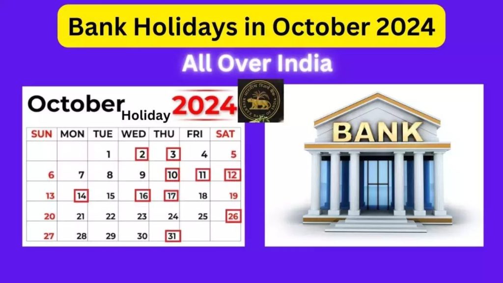 अक्टूबर 2024 मैं बैंकों की छुट्टियों की सूची: