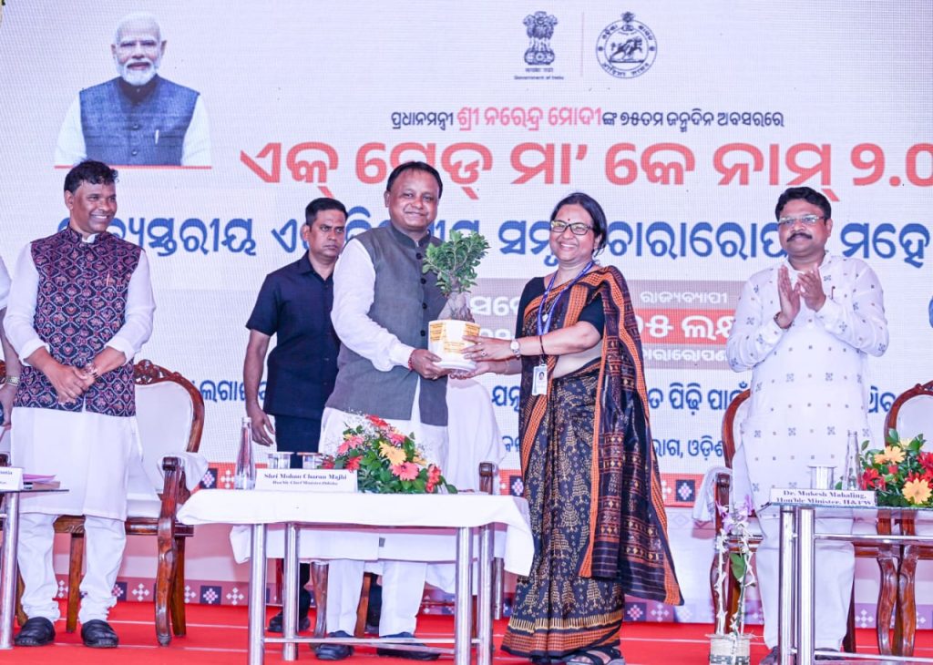 भुवनेश्वर। सामुदायिक भावना और पर्यावरण के प्रति प्रतिबद्धता का एक उल्लेखनीय प्रदर्शन करते हुए, ओडिशा ने ‘एक पेड़ माँ के नाम 2.0’ पहल के तहत एक ही दिन में 75 लाख पौधे लगाने के अपने महत्वाकांक्षी लक्ष्य को पार कर लिया है. आज दोपहर 1:40 बजे तक, राज्य ने 30 जिलों और 30,025 स्थलों पर 80,38,615 पौधे रोपकर प्रधानमंत्री नरेंद्र मोदी के 75वें जन्मदिन को धरती माता को हरित श्रद्धांजलि के रूप में चिह्नित किया.