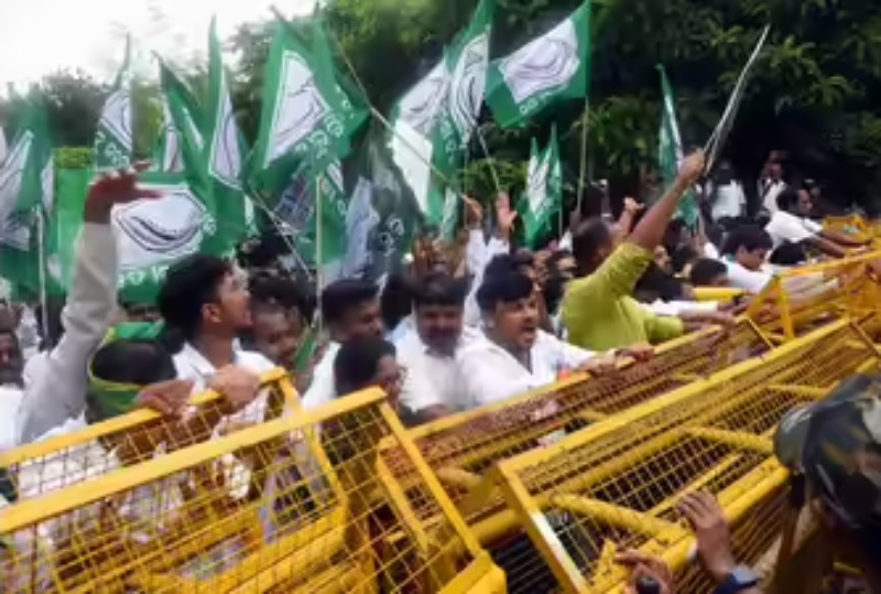 राजभवन के बाहर विरोध प्रदर्शन और तेज़ हो गया, जहां बीजद कार्यकर्ताओं ने पुलिस बैरिकेड्स तोड़ने की कोशिश की। कड़ी सुरक्षा के बीच पुलिस द्वारा भीड़ को पीछे धकेलने पर हाथापाई शुरू हो गई। बाद में बीजद नेताओं के एक प्रतिनिधिमंडल को राज्यपाल हरि बाबू कंभमपति को एक ज्ञापन सौंपने और उनके हस्तक्षेप की मांग करने के लिए अंदर जाने दिया गया।