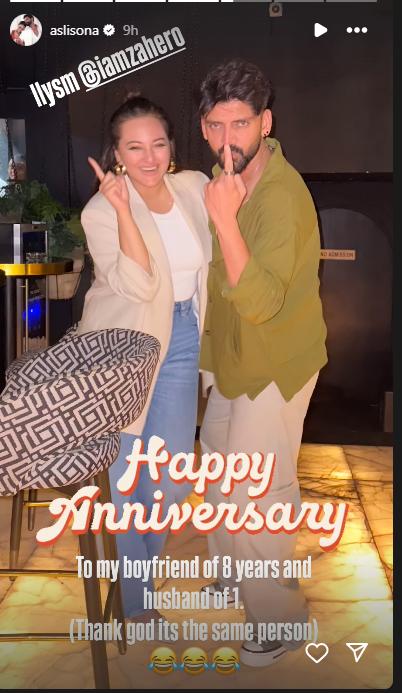 बॉलीवुड एक्ट्रेस सोनाक्षी सिन्हा (Sonakshi Sinha) और उनके पति जहीर इकबाल (Zaheer Iqbal) ने आठ साल तक डेट करने के बाद 23 जून 2024 को शादी कर लिया था. आज ये कपल अपनी शादी की पहली सालगिरह मना रहा है. आज ही के दिन इस कपल ने एक प्राइवेट रजिस्टर्ड मैरिज किया था. सालगिरह के मौके पर एक्ट्रेस ने पति और ससुराल वालों के लिए एक खास नोट लिखा है.