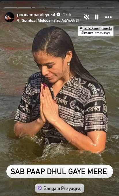 बता दें कि अपने बेबाक अंदाज और बोल्ड रोल्स के लिए फेमस एक्ट्रेस पूनम पांडे (Poonam Pandey) ने संगम तट पर डुबकी लगाते वक्त महाकाल लिखा हुआ शर्ट पहन रखा था. संगम में डुबकी लगाने के बाद पूनम पांडे (Poonam Pandey) हाथ जोड़े हुए प्रार्थना कर रही हैं.