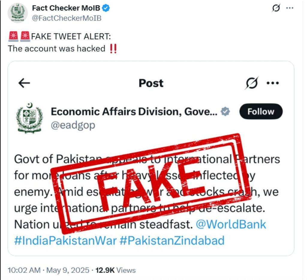 केवल भारत ही नहीं पाकिस्तान भी फेक न्यूज से जंग लड़ रहा है. एक पोस्ट सोशल मीडिया पर आज सुबह बहुत तेजी से वायरल हुआ और लोगों ने हाथों-हाथ लिया. खबर थी पाकिस्तान के अंतरराष्ट्रीय सहयोगियों से आर्थिक सहायता मांगने की थी, जो पाकिस्तान सरकार के आधिकारिक इकानॉमिक अफेयर डिवीजन की वेबसाइट पर जारी किया गया था. लेकिन चंद घंटों पर डिवीजन ने ही स्पष्टीकरण दिया कि फेक न्यूज है. अकाउंट को हैक कर किसी ने इसे पोस्ट किया है.