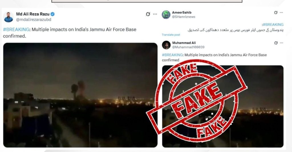 केवल पीआईबी ही नहीं लोग भी सोशल मीडिया पर आम लोगों को सेना फेक न्यूज को बताने में दिन-रात जुटी हुई है. पाकिस्तान के यूजर भारतीय ठिकानों पर हमला कर पाने में अपनी सेना की असफलता को देखते हुए खुद ही हमला करवाने लगे हुए हैं. ऐसा ही पोस्ट जम्मू एयर बेस पर हमले को लेकर किया जा रहा है, जिसे एक नहीं बल्कि भारतीय यूजर ने फेक बताते हुए पाकिस्तानियों की झूठ को बेनकाम किया है.