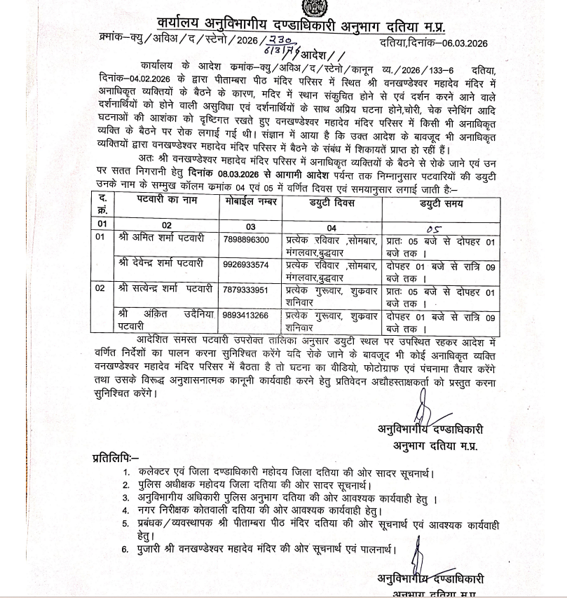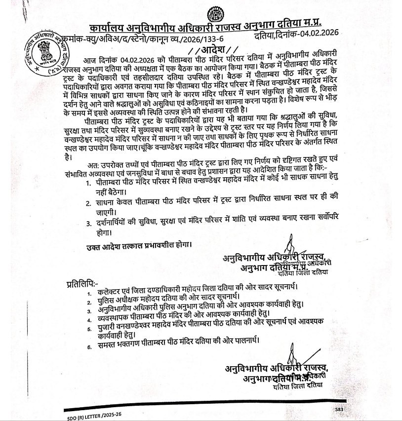 रवि रायकवार, दतिया। विश्व विख्यात पीतांबरा पीठ मंदिर पर इस समय तथाकथित साधकों का बोलबाला है। जिसके लिए मंदिर प्रबंधन और जिला प्रशासन ने पहले ही एक सूचना शिवालय में चस्पा की थी।