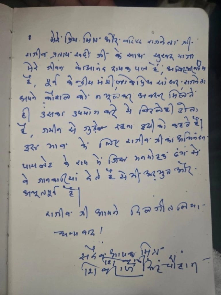 शिवराज सिंह ने आगे लिखा कि-राजीव जी का हर छोटी-बड़ी जानकारी साझा करने का अंदाज बेहद निराला था। यात्रा के अंत में जब उन्होंने सुखद और सफल उड़ान के लिए यात्रियों से ताली बजाने का अनुरोध किया, तो उसमें एक खास आत्मीयता झलक रही थी। उन्होंने इस अनुभव को अद्भुत और अभूतपूर्व बताया।
