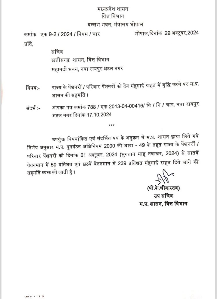शब्बीर अहमद, भोपाल। मध्य प्रदेश के पेंशनरों के लिए खुशखबरी है। प्रदेश में 7.50 लाख कर्मचारियों के बाद 4.50 लाख पेंशनरों को 50 महंगाई राहत भत्ता (डीआर) देने का भी लगभग रास्ता साफ हो गया है। छत्तीसगढ़ में 50% डीआर (DR) देने के लिए मध्य प्रदेश सरकार ने अपनी सहमति दे दी है। इसके बाद अब माना जा रहा है कि एक-दो दिन में मध्य प्रदेश में भी पेंशनरों को 50% डीआर देने के आदेश जारी हो सकते हैं।