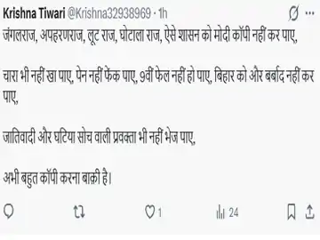 इस पोस्ट के बाद इंटरनेट पर बहस का बाजार गर्म हो गया। जहां राजद समर्थकों ने तेजस्वी को ‘ट्रेंडसेटर’ बताया, वहीं विरोधियों ने पलटवार करने में देरी नहीं की। एक यूजर ने लिखा, काश! तेजस्वी जी मोदी जी की विकास वाली राजनीति कॉपी कर लेते। वहीं, दूसरे यूजर ने तंज कसते हुए लिखा कि मोदी जी ‘जंगलराज’, ‘चारा घोटाला’ और ‘नौवीं फेल’ होने जैसी चीजों की नकल कभी नहीं कर पाएंगे।