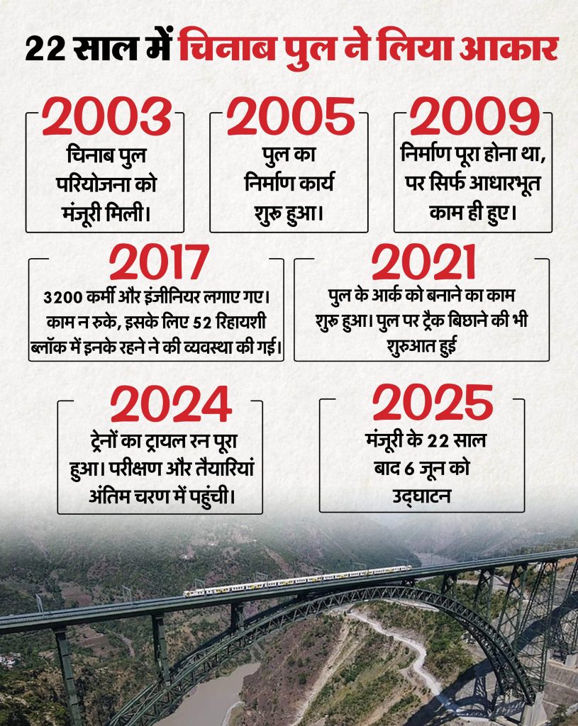 चिनाब ब्रिज प्रोजेक्ट को पूरा होने में लगे 22 साल