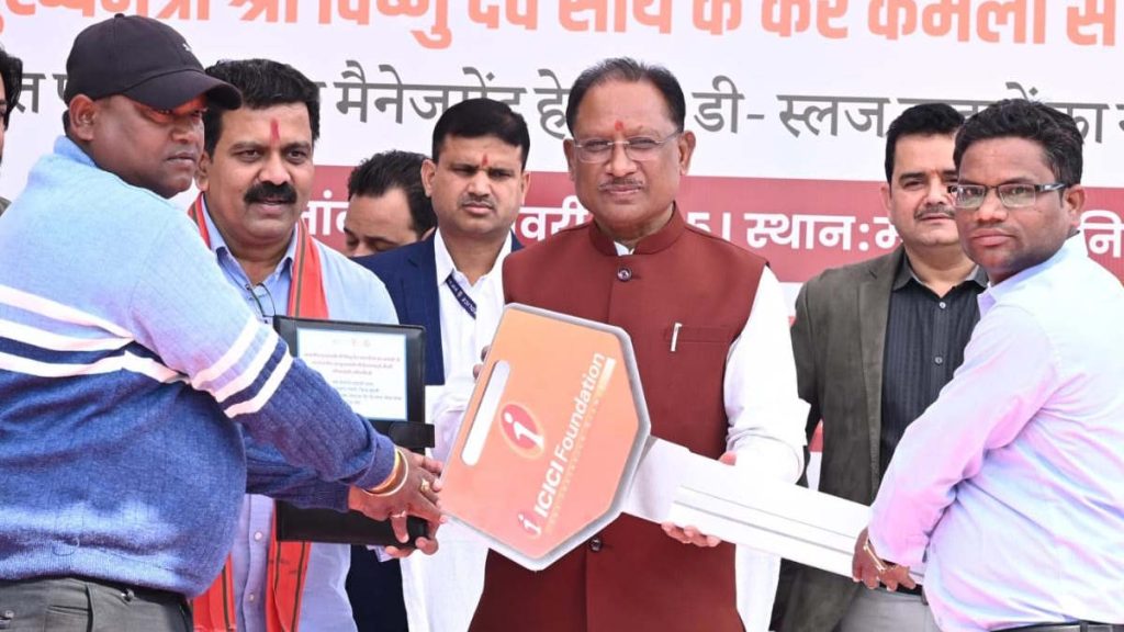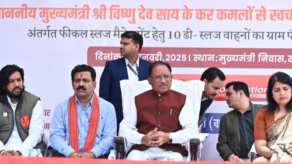 इस दौरान मुख्यमंत्री साय ने प्रदेश के 10 विभिन्न जिलों के ग्राम पंचायत के सरपंच और सचिवों को डी-स्लज वाहनों की चाबी और दस्तावेज सौंपे. उल्लेखनीय है कि इन वाहनों का उपयोग गांवों में घरों से मल निकालने और उसे सुरक्षित तरीके से निपटाने के लिए किया जाएगा.