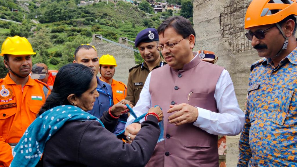 वहीं उत्तराखंड के मुख्यमंत्री पुष्कर सिंह धामी को भी रक्षाबंधन के अवसर पर एक महिला राखी बांधती दिखाई दी। शुक्रवार को उत्तरकाशी जिले में आपदा प्रभावित धराली से बचाई गई एक महिला ने सीएम की कलाई पर राखी बांधी।