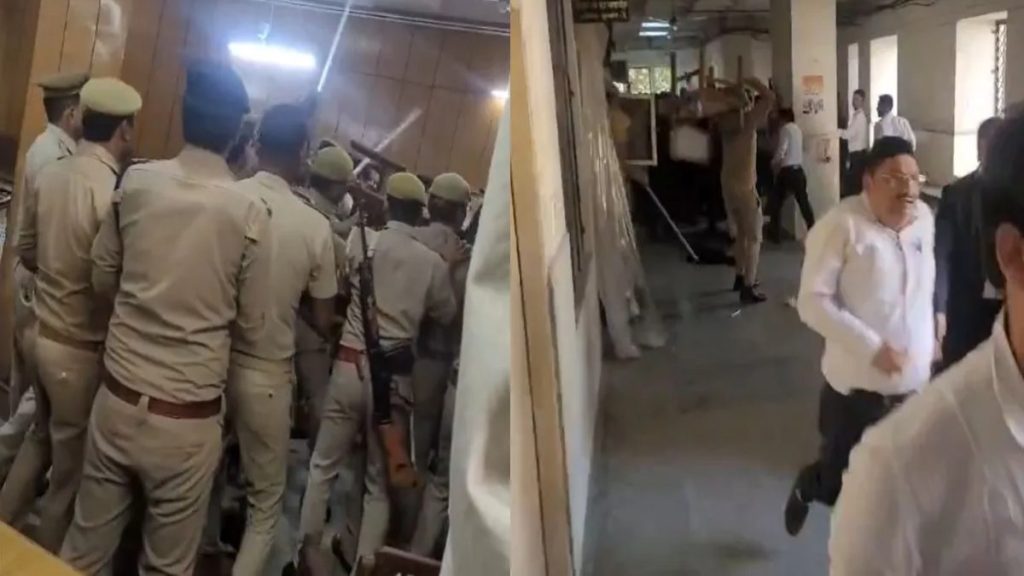 हंगामा और बवाल के बीच वकीलों ने कोर्ट परिसर में पथराव और तोड़फोड़ की. जिसके बाद जिला जज ने मौके पर पुलिस फोर्स बुलाई. जानकारी के मुताबिक एक केस की सुनवाई के दौरान ये हंगामा और बवाल हुआ है.