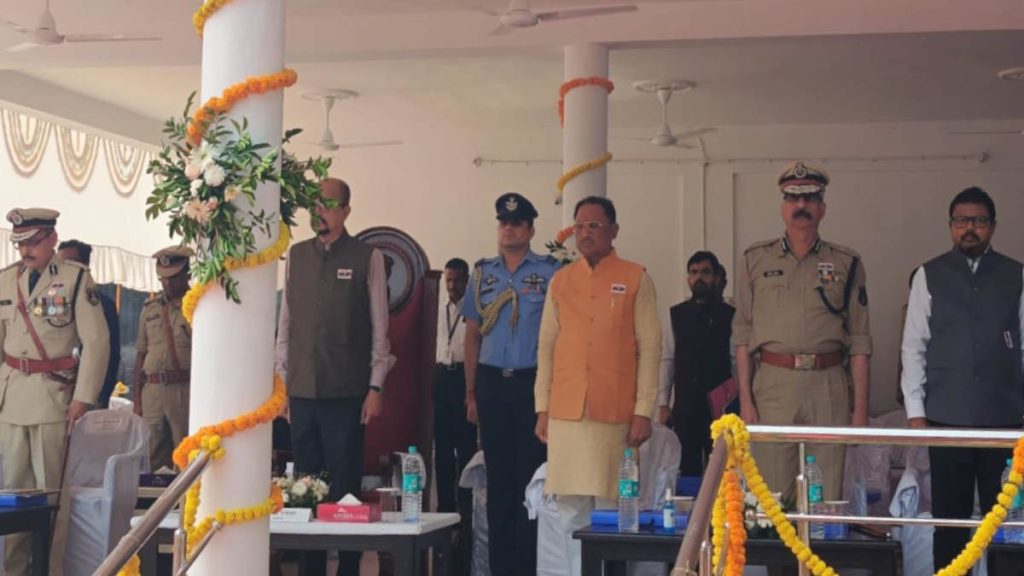 नितिन नामदेव, रायपुर। चौथी वाहिनी छग सशस्त्र बल परिसर में सोमवार को पुलिस स्मृति दिवस का आयोजन किया गया. राज्यपाल रमेन डेका और मुख्यमंत्री विष्णु देव साय के अलावा तमाम वरिष्ठ पुलिस अधिकारियों ने शहीद 11 पुलिस कर्मियों को श्रद्धांजलि अर्पित की. यह अवसर शहीद पुलिस कर्मियों के परिजनों के साथ-साथ कार्यक्रम में मौजूद लोगों के लिए एक भावुक क्षण था. इसे भी पढ़ें : पांच दिन से लापता पंडो की जंगल में मिली लाश, पुलिस को गुमराह करने साथी पंडो ने बताई थी अलग कहानी…