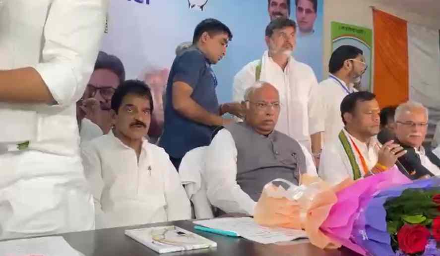 लक्षिका साहू, रायपुर. कांग्रेस के राष्ट्रीय अध्यक्ष मल्लिकार्जुन खरगे ने प्रदेश कांग्रेस मुख्यालय में पॉलिटिकल अफेयर्स कमेटी की बैठक ली. उन्होंने नेताओं को एकजुट रहकर काम करने की सलाह दी. खरगे ने कहा, भाजपा हमारे नेताओं पर झूठे आरोप लगाकर जेल भेजने की कोशिश कर रही है. उनके प्रयासों को सफल नहीं होने देना है. एकजुटता से इसका जमकर विरोध करें.