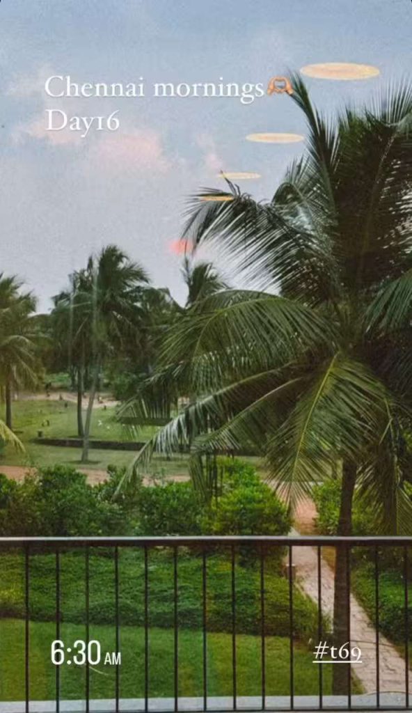 इस पोस्ट को पूजा हेगड़े (Pooja Hegde) ने कैप्शन में लिखा- ‘चेन्नई मॉर्निंग डे 16…’ उन्होंने बताया कि उनके दिन की शुरुआत सुबह 6.30 बजे होती थी. फिल्म ‘थलापति 69’ (Thalapathy 69) विजय के इर्द-गिर्द घूमेगी और अक्टूबर 2025 में तमिल, तेलुगु और हिंदी सहित कई भाषाओं में रिलीज होगी. फिल्म का निर्देशन एच. विनोथ (H. Vinoth) ने किया था. Read More – 1 साल बाद Honey Singh को आई बहन की याद, सरप्राइज देने मेलबर्न पहुंचे सिंगर …