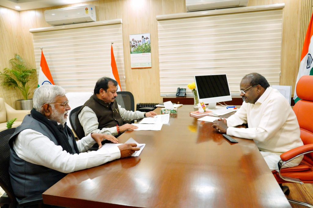 भिलाई। छत्तीसगढ़ विधानसभा के पूर्व अध्यक्ष प्रेमप्रकाश पाण्डेय और दुर्ग सांसद विजय बघेल ने केंद्रीय इस्पात मंत्री एच.डी. कुमारस्वामी से मुलाकात कर भिलाई इस्पात संयंत्र (बीएसपी) टाउनशिप से जुड़े गंभीर मुद्दों पर ज्ञापन सौंपा। ज्ञापन में टाउनशिप के कर्मचारियों, सेवानिवृत्त कर्मचारियों, व्यापारियों और स्थानीय निवासियों को प्रभावित करने वाली नीतिगत समस्याओं पर तत्काल हस्तक्षेप की मांग की है। जिस पर इस्पात मंत्री ने सकारात्मक आश्वासन दिये।