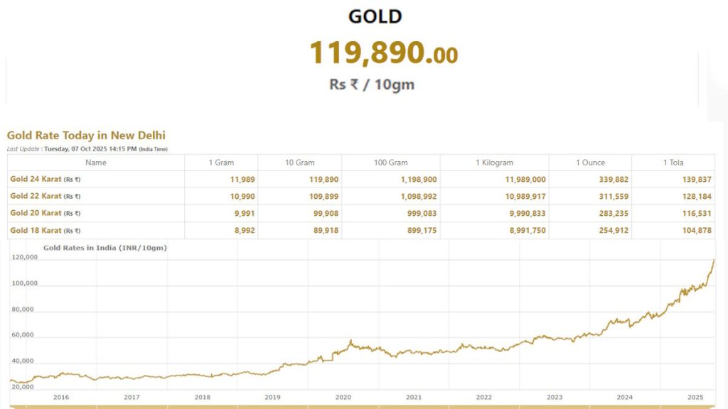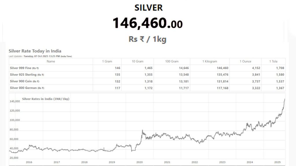 तुलनात्मक बात करें तो नई दिल्ली में सोने की दर पिछले हफ्ते 1,16,940 रुपए (+2.23) थी, वहीं एक महीने पहले 1,07,750 रुपए (+11.05) और सालभर पहले 75,860 रुपए (+57.74) थी. वहीं चांदी की कीमत पिछले हफ्ते 1,141,690 रुपए (+2.75) थी, एक महीने पहले 1,24,100 रुपए (+17.31)और सालभर पहले 92,160 रुपए (+57.96) थी.