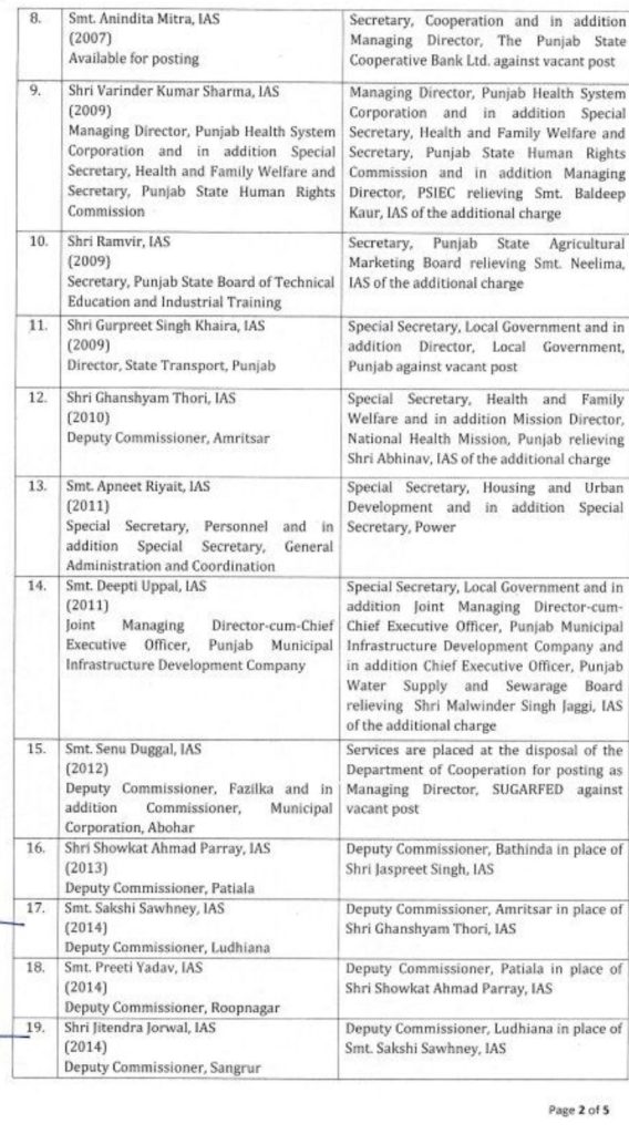 पंजाब सरकार के कार्मिक विभाग की ओर से जारी इस आदेश के अनुसार, आईएएस अधिकारी शौकत अहमद परे को बठिंडा का उपायुक्त (डीसी) नियुक्त किया गया है. साक्षी साहनी को अमृतसर का उपायुक्त नियुक्त किया गया है.