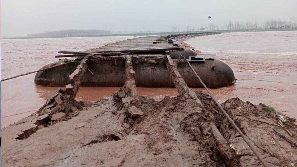 दीनानगर. पंजाब के मकौरा पत्तन पर रावी नदी पर बना अस्थायी पंटून पुल हटाए जाने के चलते दीनानगर क्षेत्र के अंतर्गत नदी के पार बसे सात गांवों का सड़क संपर्क पूरी तरह से कट गया है. बरसात के मौसम और रावी नदी में जलस्तर बढ़ने की आशंका को देखते हुए नहर विभाग ने लगभग 15 दिन पहले इस पुल को अस्थायी रूप से हटा दिया था. इसके चलते स्थानीय निवासियों को गंभीर समस्याओं का सामना करना पड़ रहा है.
