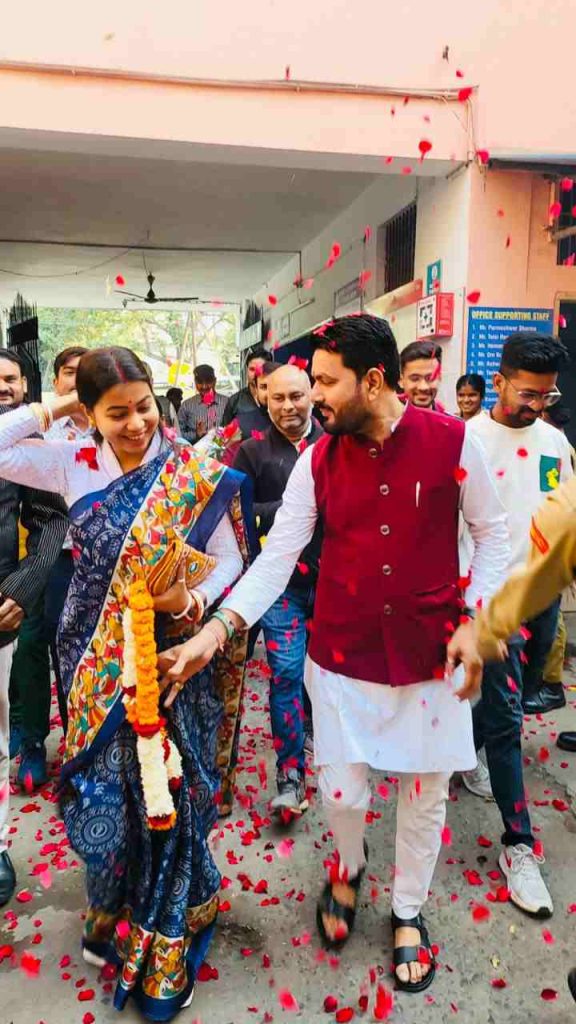 रायपुर। राजधानी रायपुर के महंत काॅलेज से पढ़कर निकलने वाले छात्र-छात्राएं आज विभिन्न मुकाम पर हैं. खुशी की बात ये हैं कि यहां से पढ़कर निकली छात्रा बहन पूर्णिमा साहू जमशेदपुर (पूर्वी ) से विधायक निर्वाचित हो चुकी हैं. रायपुर प्रवास के दौरान पूर्णिमा जब महंत काॅलेज पहुंची तो खुशी के भाव उनके चेहरे पर झलक रही थी. पुराने दिनों की याद ताजा कर वो भावुक भी हो गई. काॅलेज परिवार की ओर से सभी पुराने साथियों ने गर्मजोशी के साथ विधायक पूर्णिमा का स्वागत किया.