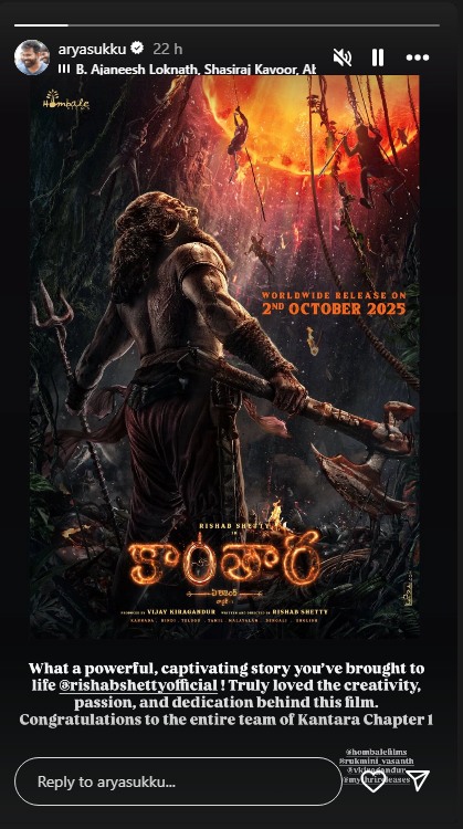 बता दें कि सुकुमार (Sukumar) ने अपने सोशल मीडिया हैंडल पर एक भावुक संदेश साझा किया. उन्होंने अपनी पोस्ट में लिखा- “आपने कितनी प्रभावशाली और मनोरम कहानी को जीवंत कर दिया है @rishabshettyofficial! इस फिल्म के पीछे की रचनात्मकता, जुनून और समर्पण मुझे सचमुच बहुत पसंद आया. Kantara: Chapter 1 की पूरी टीम को बधाई.”