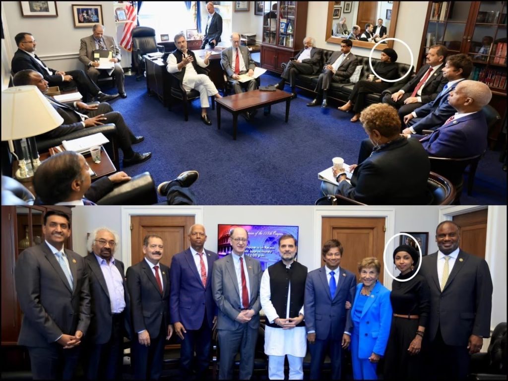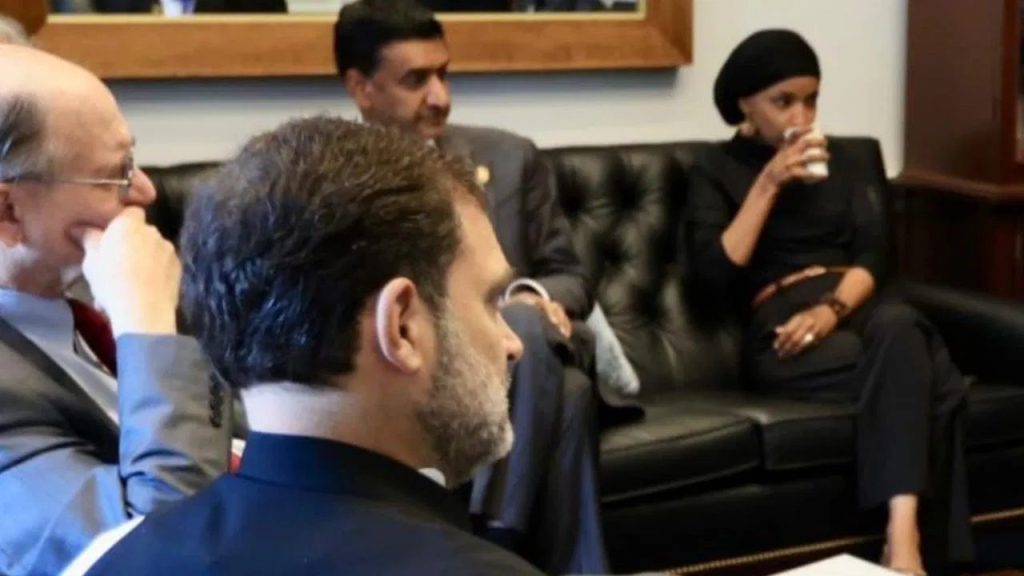 Rahul Gandhi Meets Ilhan Omar: कांग्रेस सांसद राहुल गांधी का अमेरिका दौरा ( Rahul Gandhi USA Visit) और विवादों का साथ गहराता जा रहा है। कांग्रेस सांसद राहुल गांधी ने मंगलवार को अमेरिकी सांसदों के एक प्रतिनिधिमंडल से मुलाकात की। इन सांसदों में अमेरिका की विवादित चेहरा और भारत विरोधी इल्हान उमर भी थी। दोनों के बीच मुलाकात और बातचीत की इमेज जैसे ही सोशल मीडिया वायरल हुई, भारत में कोहराम मच गया। अब बीजेपी ने इसे लेकर राहुल पर निशाना साधा है। बीजेपी ने कहा कि राहुल गांधी सत्ता में आने के लिए उतावले हैं। इसी उतावलेपन की वजह से ही कट्टरपंथी इस्लामिक इल्हान उमर से मुलाकात करने अमेरिका गए हैं।