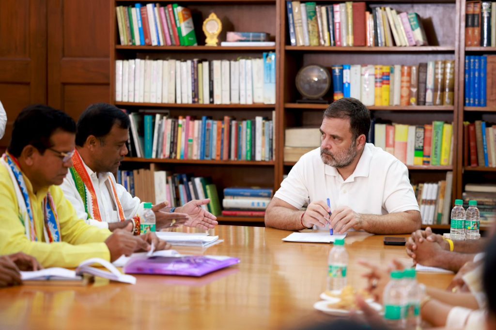 रायपुर. आदिवासियों के हितों को लेकर आज नई दिल्ली में कांग्रेस के नेता प्रतिपक्ष राहुल गांधी ने आदिवासी समुदाय से जुड़े नेताओं और विधायकों के साथ विशेष बैठक की. जिसमें छत्तीसगढ़ के पीसीसी चीफ दीपक बैज, राजयसभा सांसद फूलोदेवी नेताम समेत कई आदिवासी नेता शामिल हुए. बैठक में जल, जंगल, जमीन समेत विभिन्न मुद्दों पर चर्चा की गई. वहीं विधायक जनकराम ध्रुव ने राहुल गांधी से सदन में आदिवासियों के लिए अलग धर्म कोड देने की मांग रखने की बात रखी. साथ ही बस्तर और सरगुजा में आदिवासी लीडरशिप मजबूत करने के लिए ट्रेनिंग प्रोग्राम आयोजित करने के लिए कहा.
