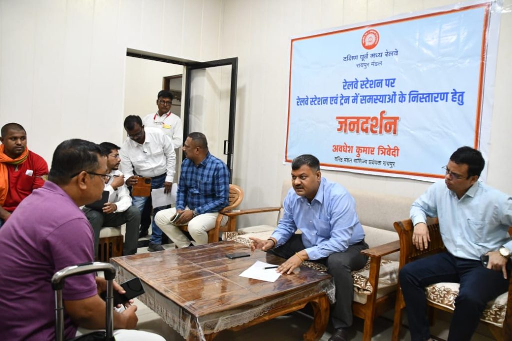 प्रतीक चौहान. रायपुर. यात्रियों की समस्या सुनने के लिए रेलवे ने अधिकारियों को जनदर्शन लगाने का आदेश दिया है. लेकिन रायपुर रेल मंडल में सीनियर डीसीएम ने बंद एसी कमरे में बैठकर यात्रियों की समस्या सुनी. रायपुर रेलवे स्टेशन के वीआईपी लाउंज में ये जनदर्शन आयोजित किया गया था.